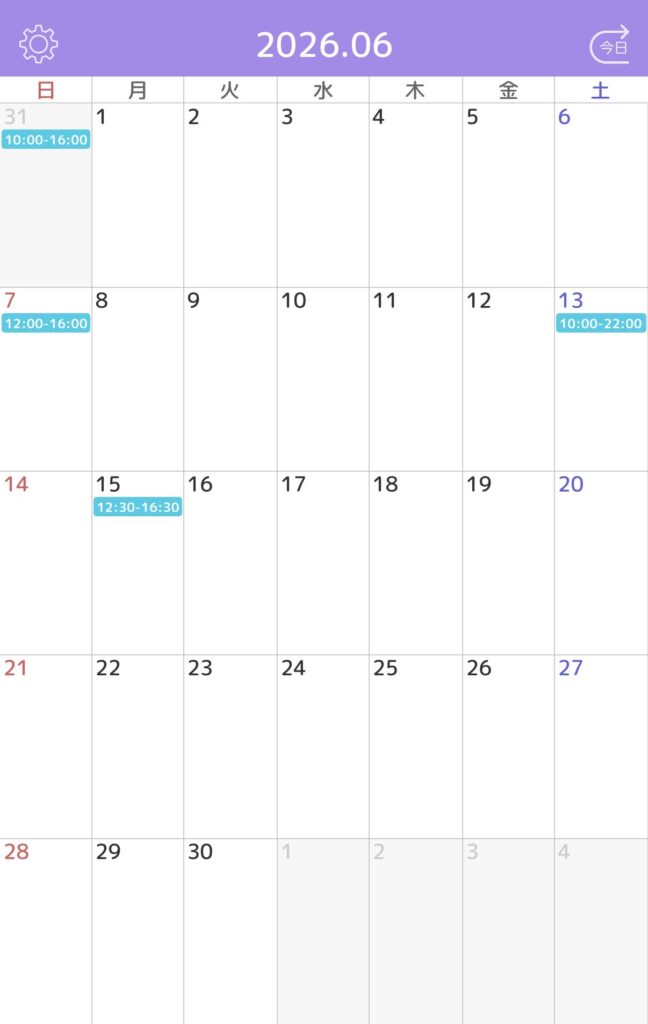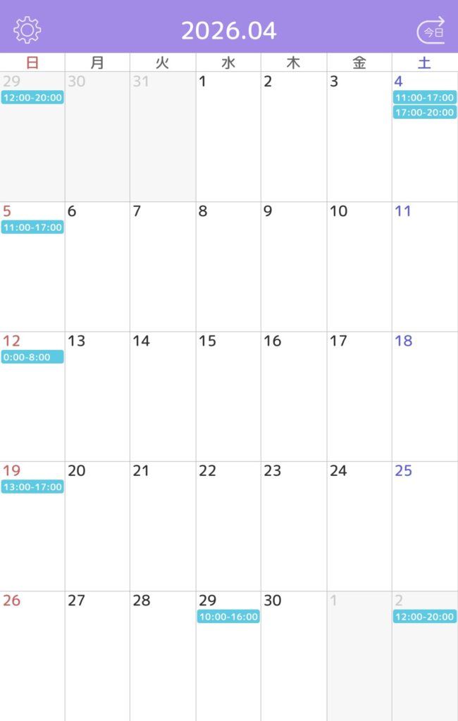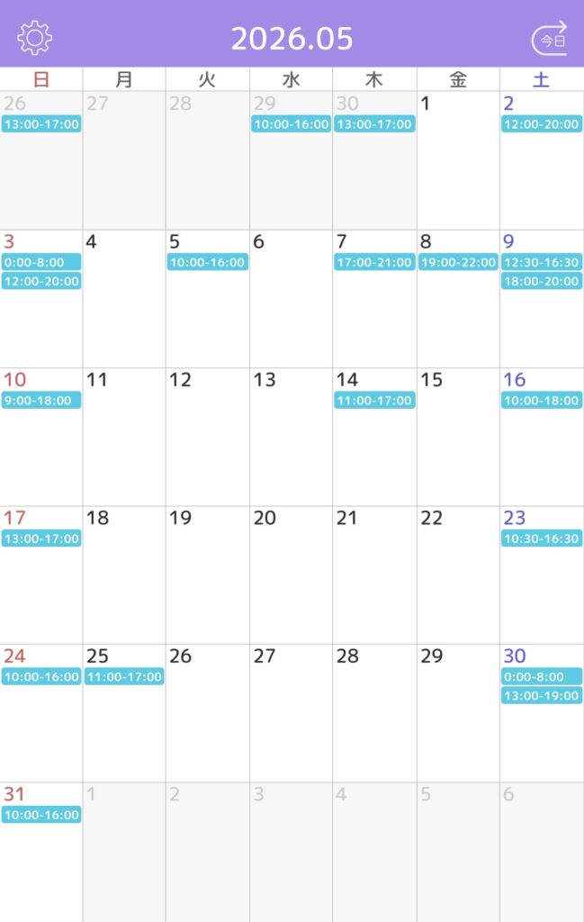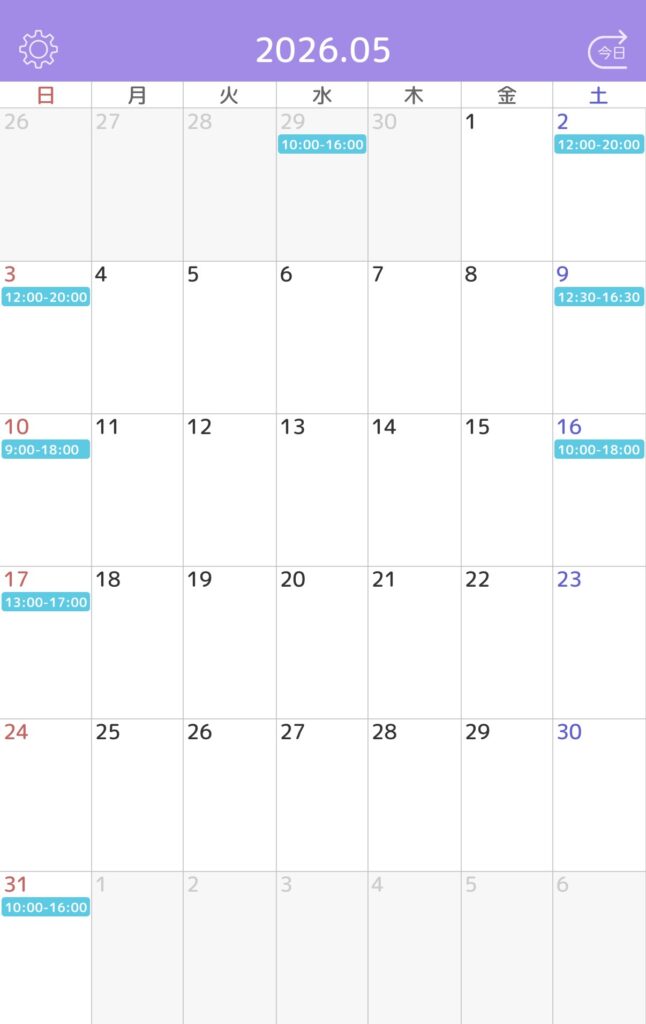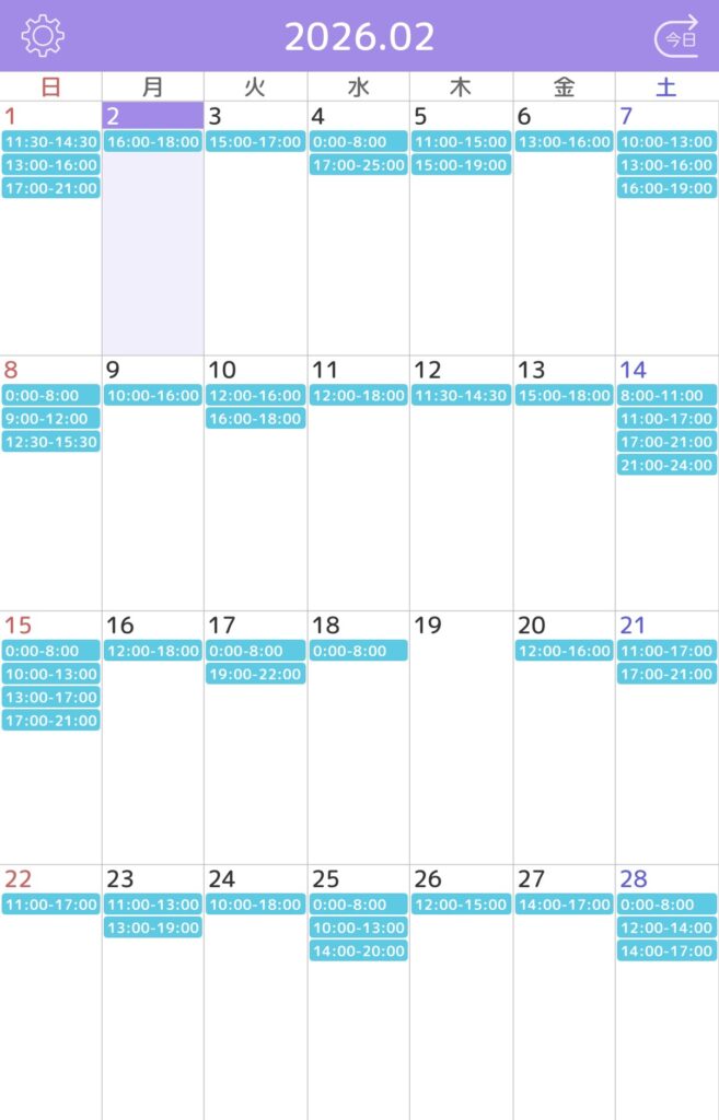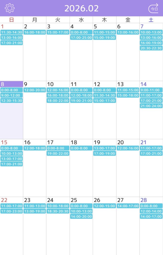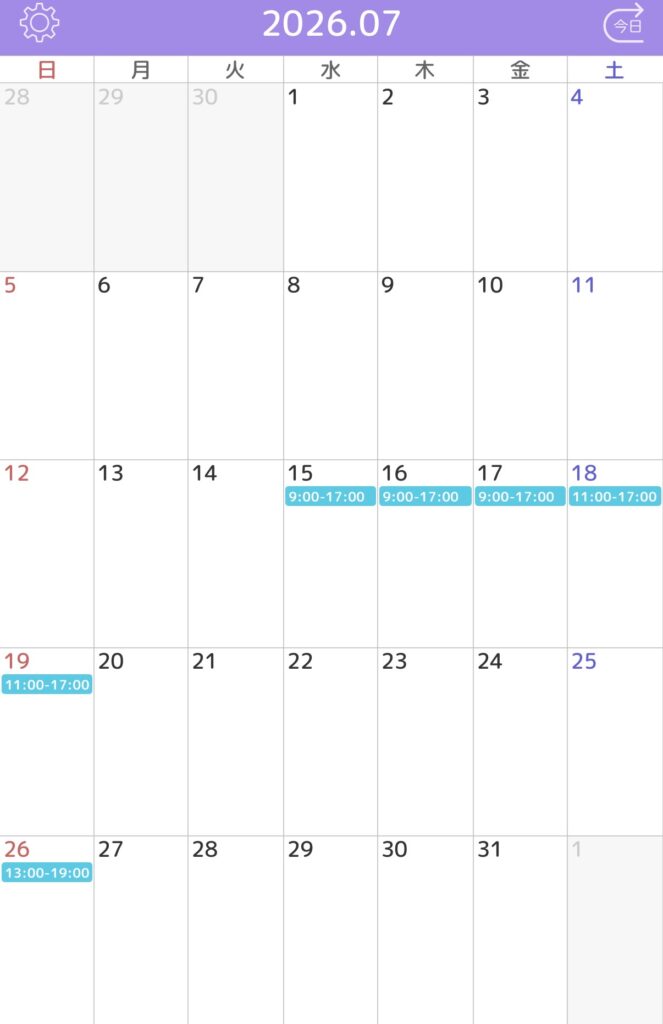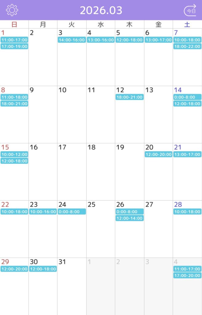 ※水色枠がご予約確定しているお時間です。